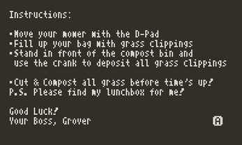 | Tags | 1-bit, Arcade, crank, lawn-mowing, No AI, Playdate, pulp |